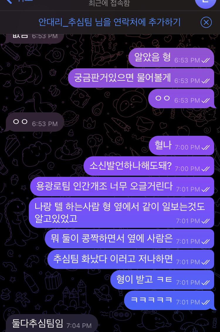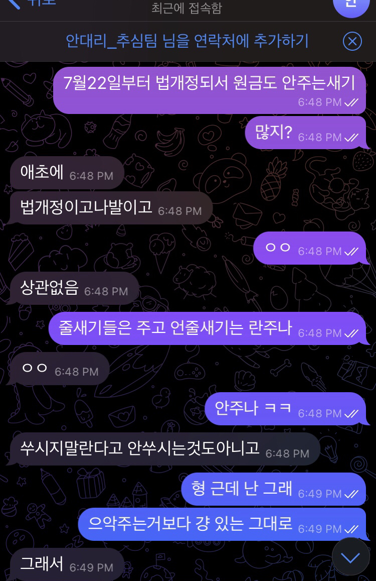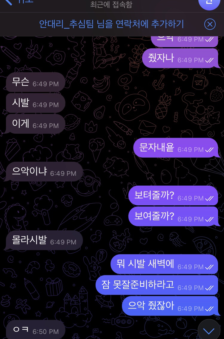적당히 좀 하소.. 니들 일도 아니고 니들 일이면 카톡을 하세요. 변상해줄테니까.