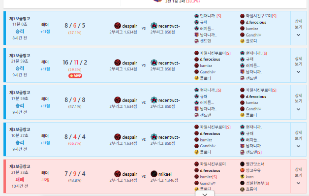 상대방이 너무 좆밥이고, 결론은 볼게 없는데 꾸역꾸역 겨우 킬따고 옵뎃 안 할려고 개사림
