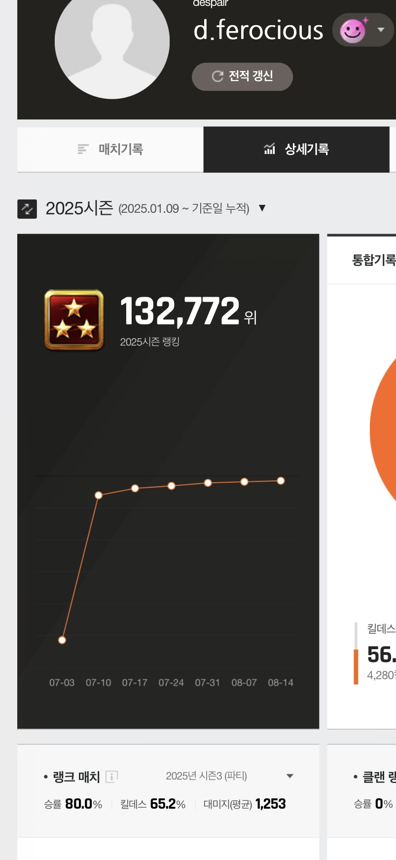 승률80 킬뎃65.2 ㅋㅋㅋ