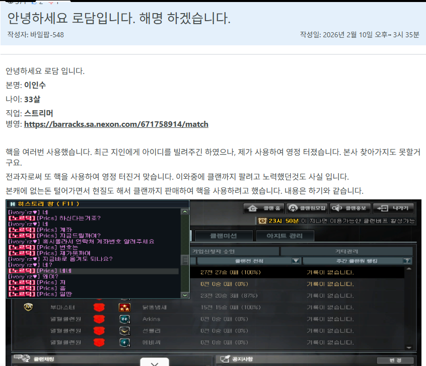 제번호를 뿌린 송기준(전아담스유저 전닉: 레이븐송브릭 현 something 클마 Nada )에게도 고소 진행할예정입니다.